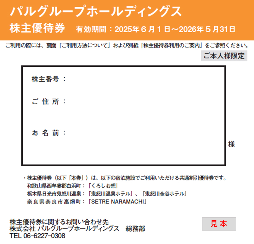 当社株式を100株以上保有されている株主様に、株主優待券(以下「本券」)を贈呈いたしますので、皆様のご旅行にご利用ください。